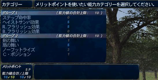 STR 10→0、DEX 5→5、CHR 0→5、回避 0→3